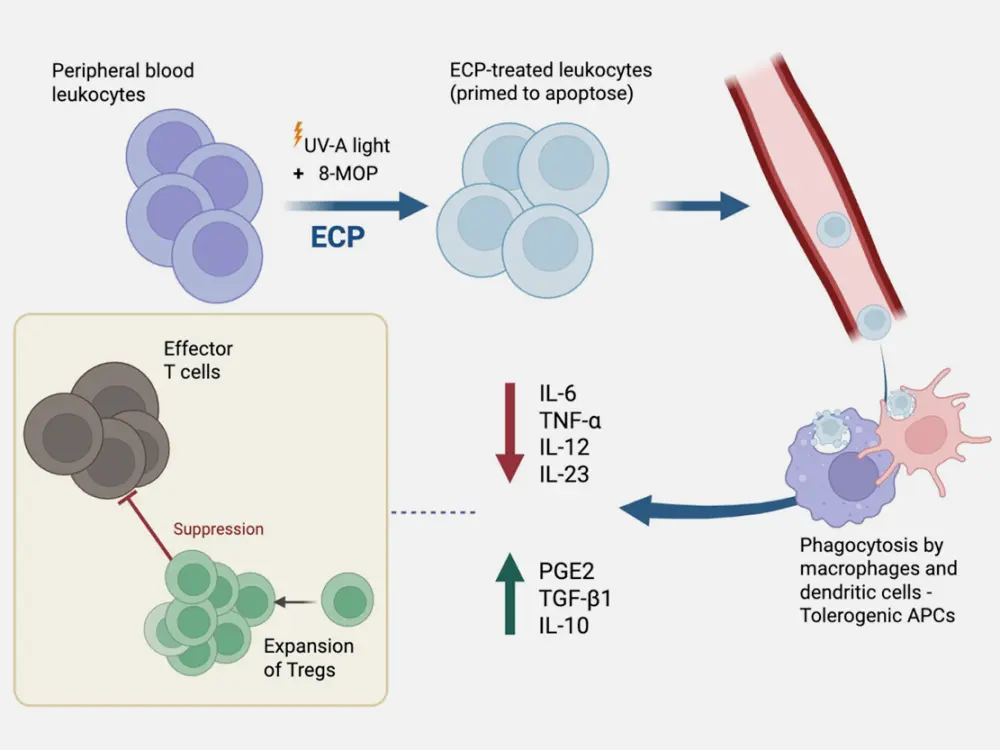 In recent years, significant progress has been made in understanding the immunopathology of GvHD and the mechanisms by which ECP modulates immune responses. As insights continue to move from bench to bedside, there is growing potential to harness immunological features of GvHD to improve diagnosis, monitoring, and treatment. In the context of ECP, this includes identifying and validating biomarkers that reflect biological response and clinical outcomes. A deeper understanding of the mechanism of action of ECP, through its effects on dendritic cells, regulatory T cells, and NK-cell subsets, can support the development of biomarker-informed approaches to guide patient selection, treatment intensity and duration, and decisions about tapering or combining with other therapies. Further research is needed to determine how best to incorporate GvHD biomarkers into ECP treatment pathways, with the goal of personalizing care, minimizing toxicity, and maximizing clinical benefit for each patient.