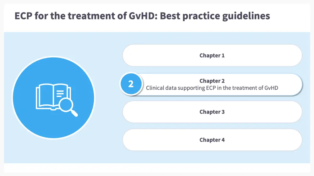 To learn more about the guidelines and recommendations for ECP in GvHD, go to Chapter 3 | Guidelines and recommendations for the use of ECP in the treatment of GvHD.
