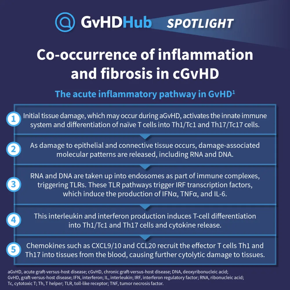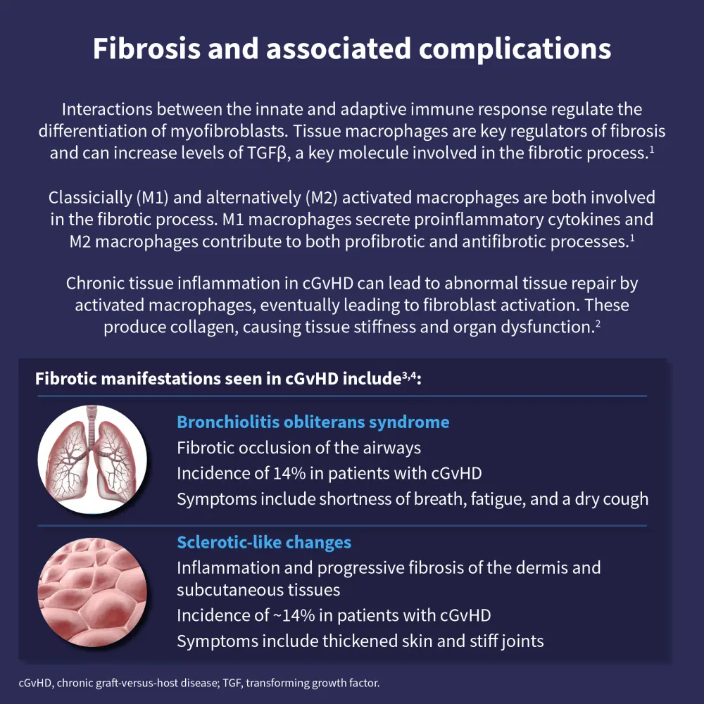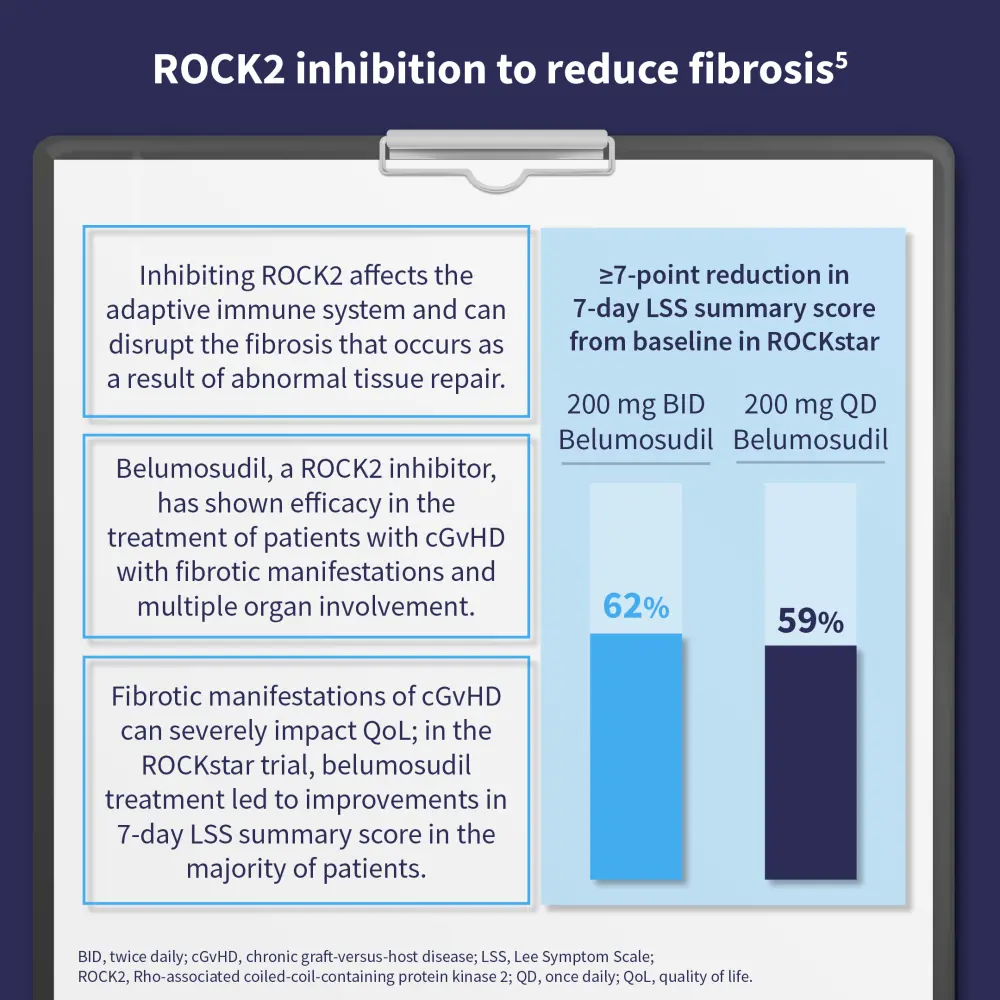 Inflammation in chronic graft-versus-host disease (GvHD) can occur alongside fibrotic manifestations, which can severely impact quality of life. Belumosudil, a ROCK2 inhibitor, has shown efficacy in treating a chronic GvHD patient population with fibrotic manifestations and multiple organ involvement.