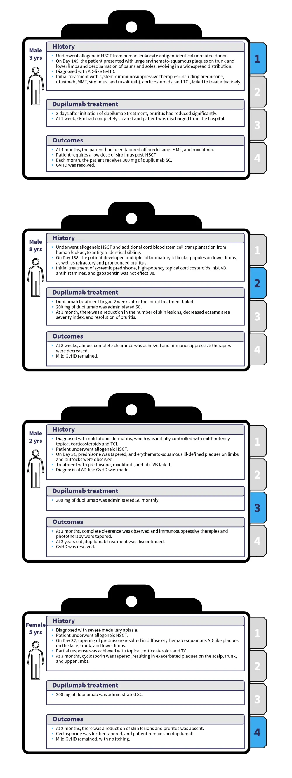 Here, we summarize a case series published by Belmesk et al.1 in JAAD Case Reports on the successful use of dupilumab in treating recalcitrant pediatric atopic dermatitis-like (AD-like) GvHD.