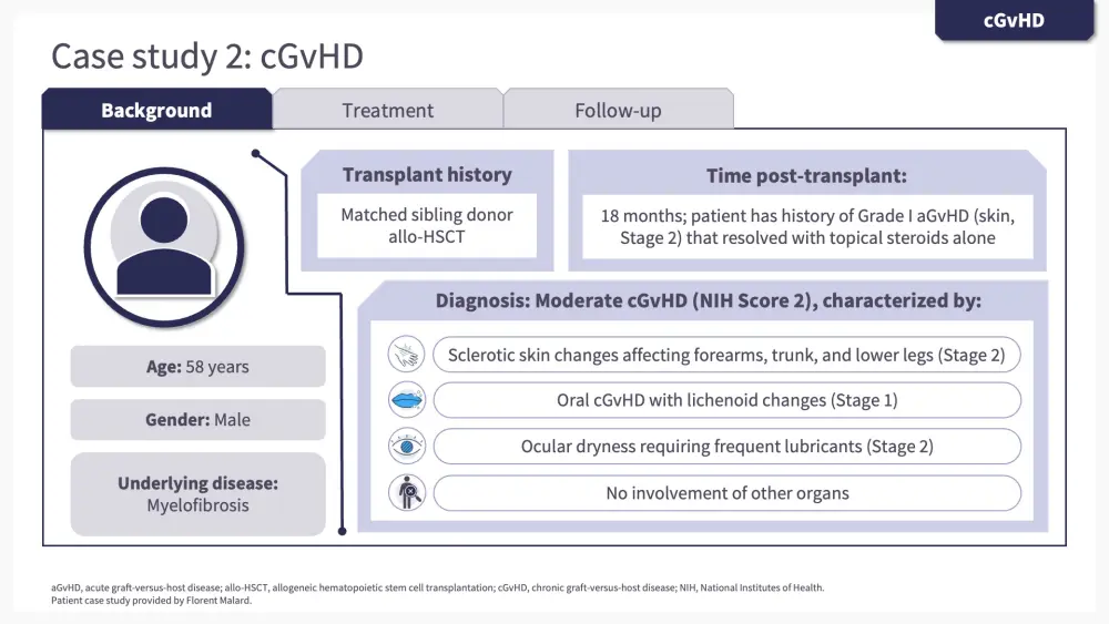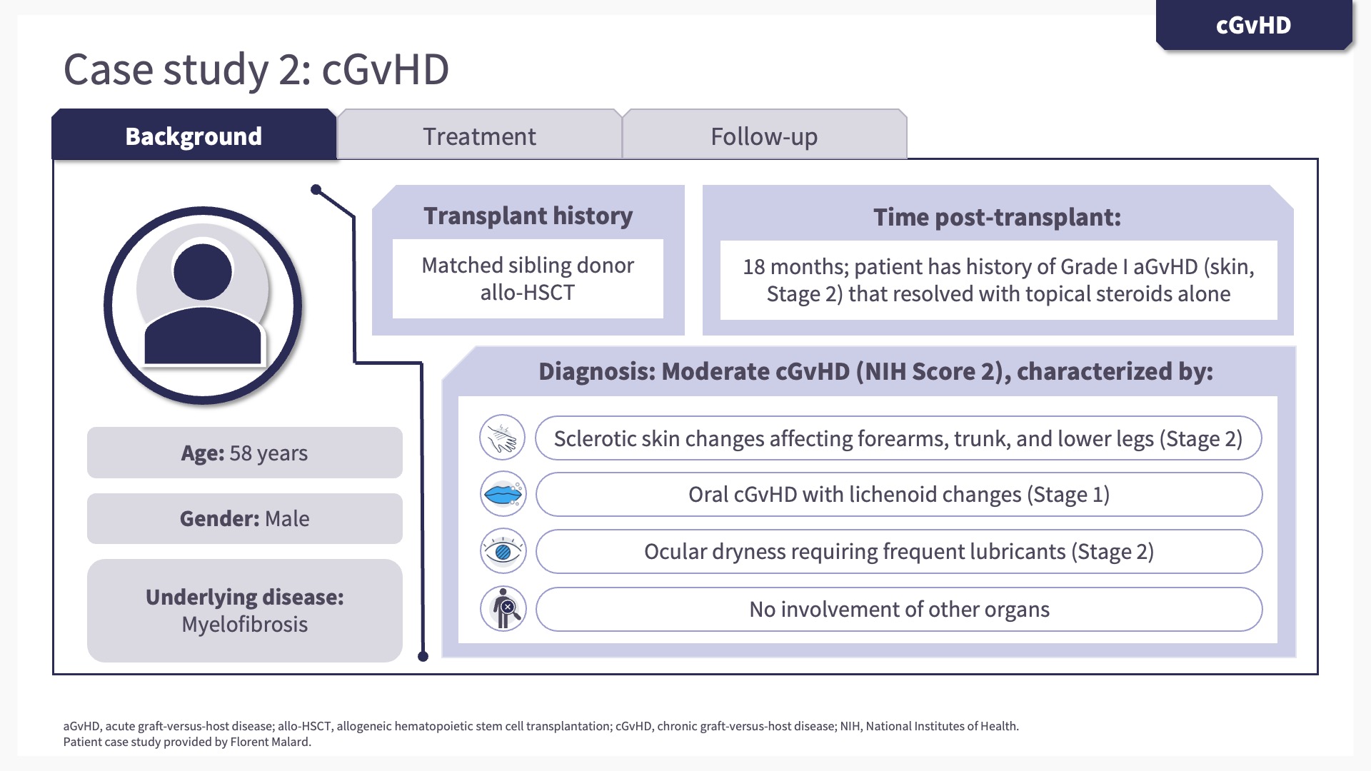 Click through the slides below to explore the second patient case study in chronic GvHD.