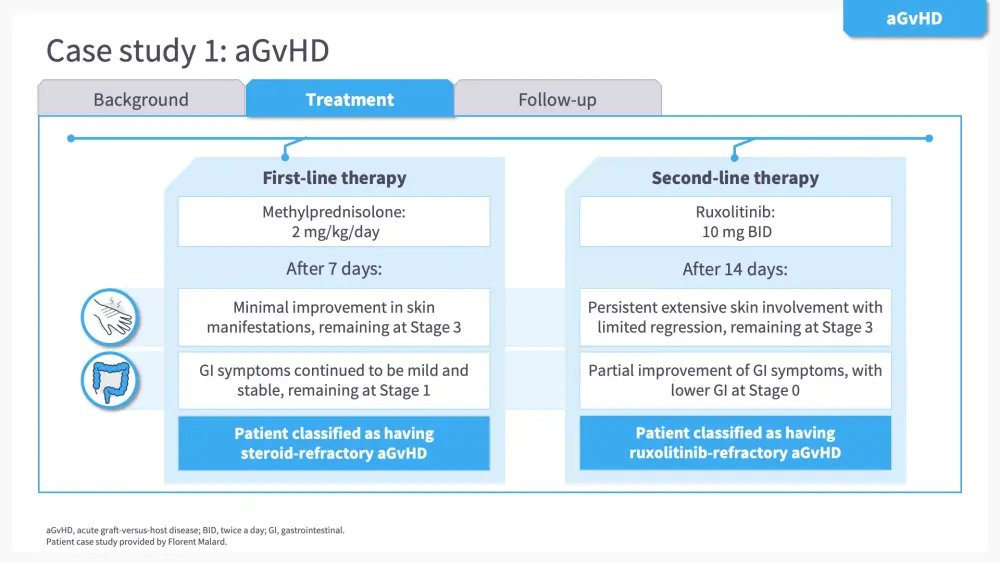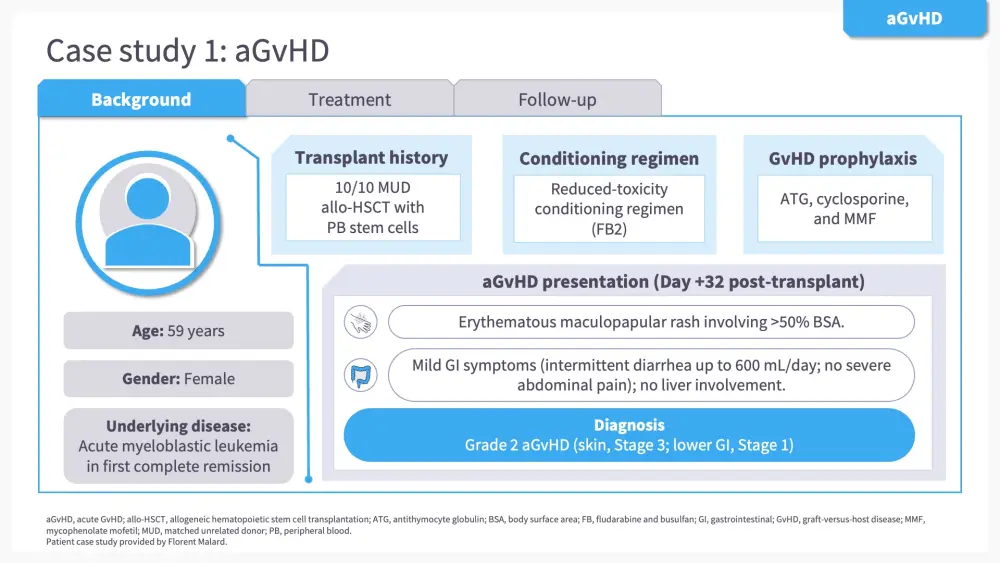 Click through the slides below to explore the first patient case study in acute GvHD.