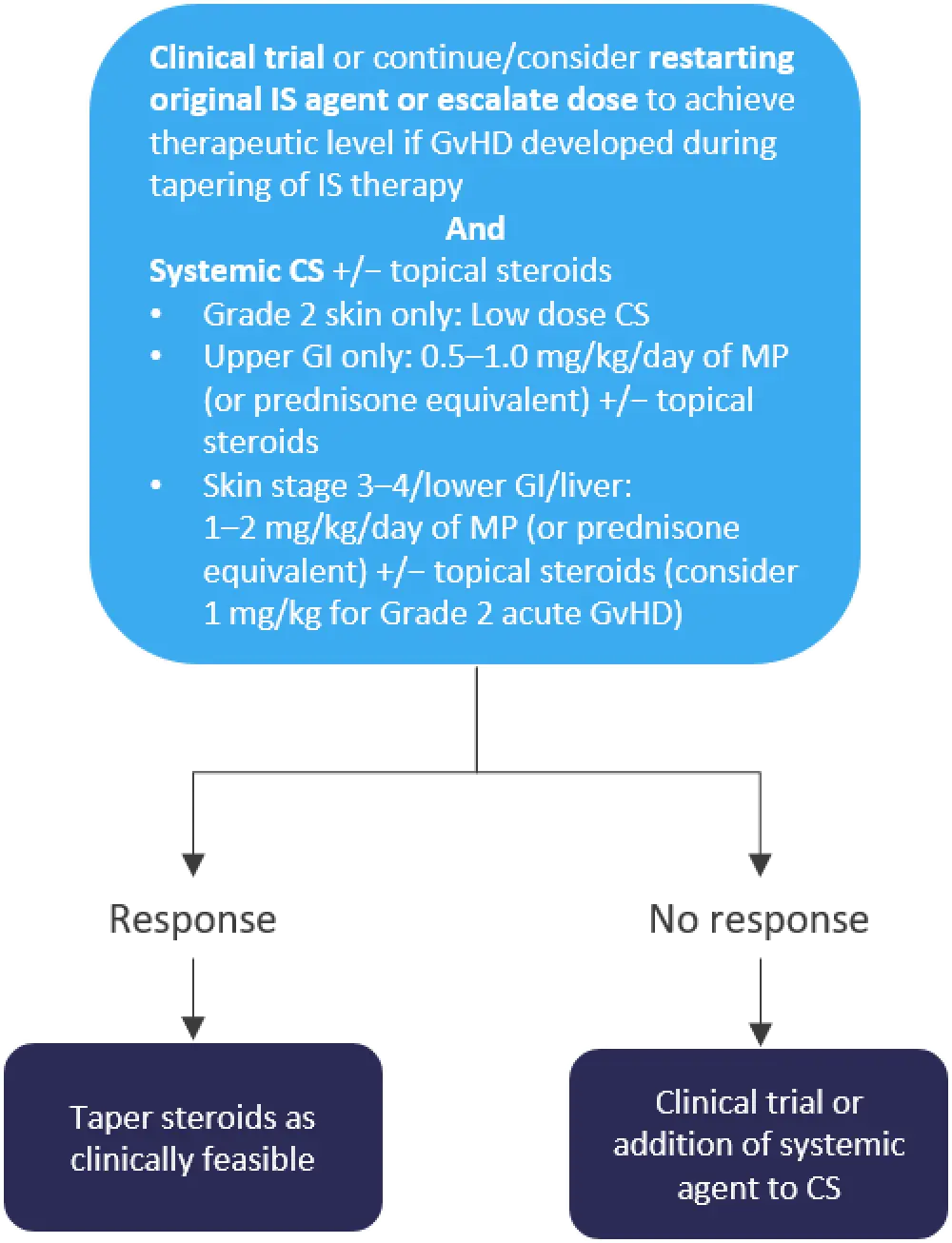 CS, corticosteroids; GvHD, graft-versus-host disease; IS, immunosuppressive; MP, methylprednisolone.