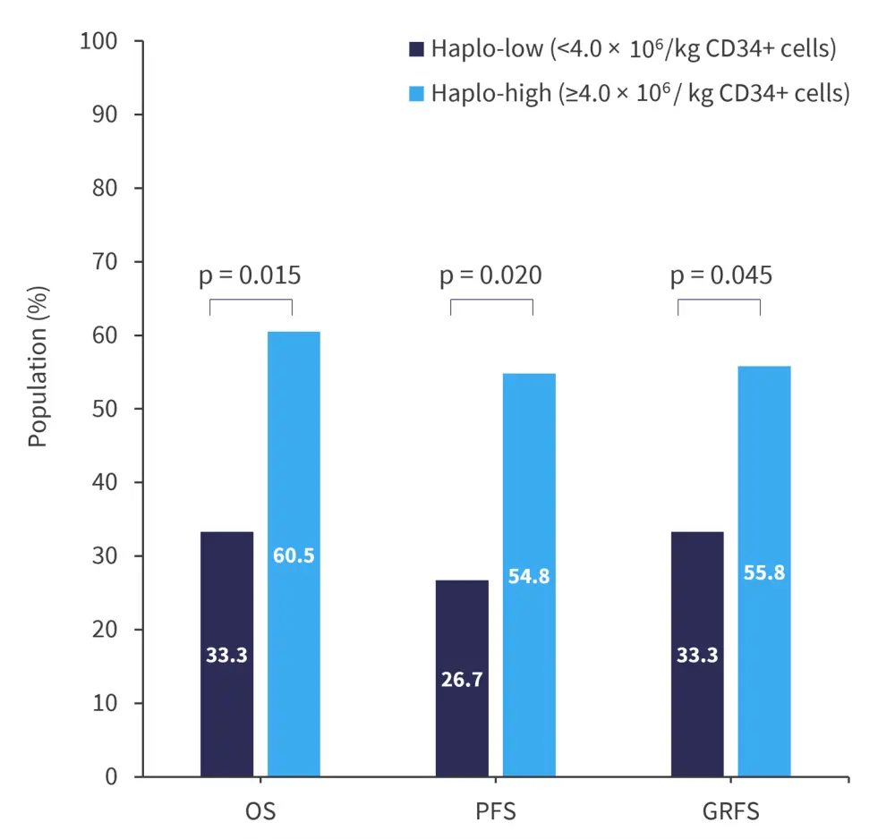 GRFS, graft-versus-host disease-free relapse-free survival; haplo-PBSCT, haploidentical peripheral blood stem cell transplantation; OS, overall survival; PFS, progression-free survival.