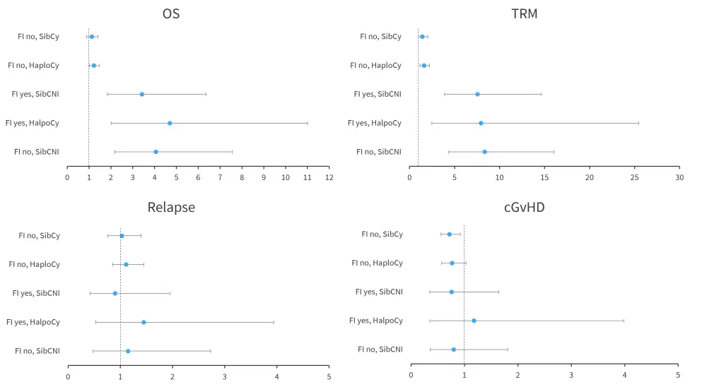 cGvHD, chronic graft-versus-host disease; FI, fungal infection; OS, overall survival; TRM, transplant-related mortality.