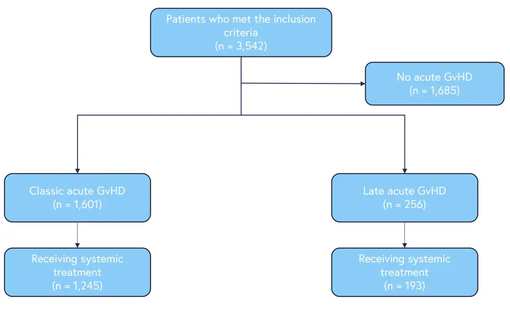 This retrospective analysis compared patients from 24 transplant centers across North America, Europe, and Asia. Patients with aGvHD were included, they were spilt into classic aGvHD and late aGvHD based on whether GvHD occurred before or after Day 100 post-HSCT.