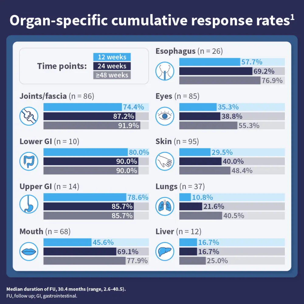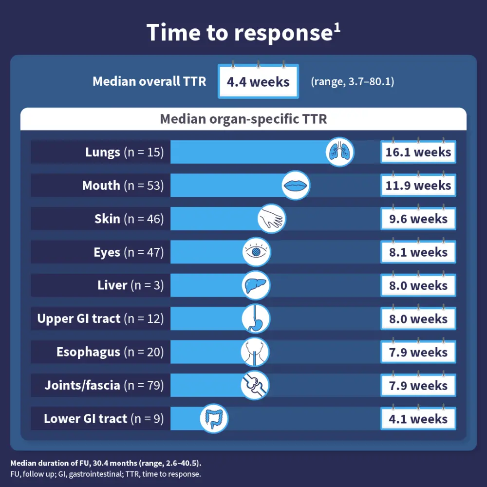Results from this analysis showed that response kinetics varied by organ, highlighting the importance of managing clinical expectations and adapting treatment duration according to organ-specific response patterns.3