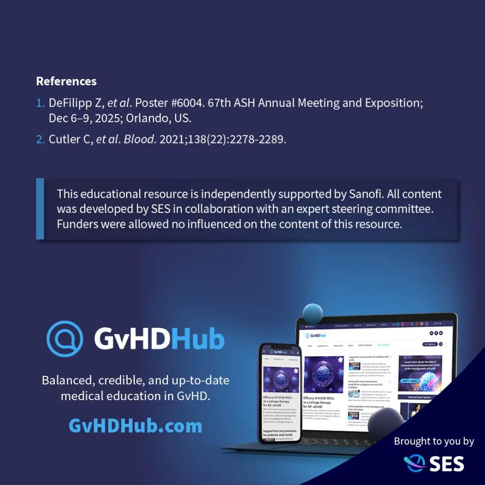The GvHD Hub is an independent medical education platform, sponsored by Medac and supported through grants from Sanofi and Therakos. Funders are allowed no direct influence on our content. The levels of sponsorship listed are reflective of the amount of funding given. View funders.