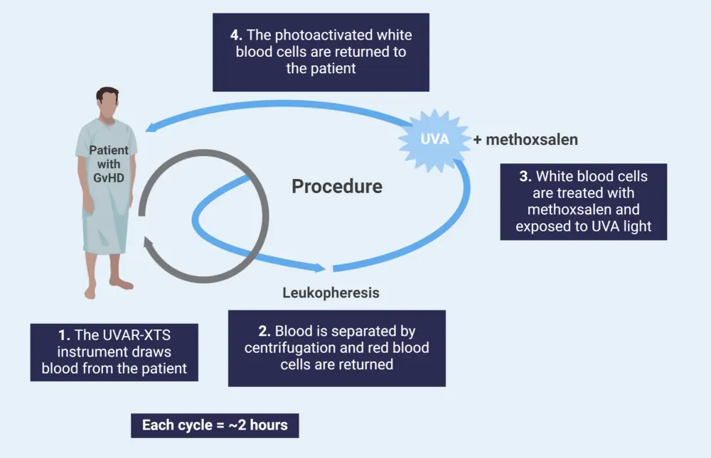 ECP, extracorporeal photopheresis; GvHD, graft-versus-host disease; UVA, ultraviolet A.