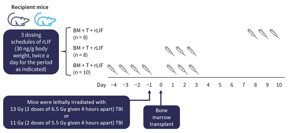 BM, bone marrow; rLIF, recombinant LIF protein; T, T cells; TBI, total body irradiation.