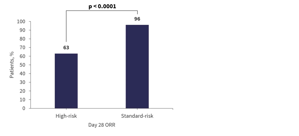 When stratifying by Day 28 overall response rate, improved response rates were seen in the standard-risk cohort compared with the high-risk cohort (Figure 2).