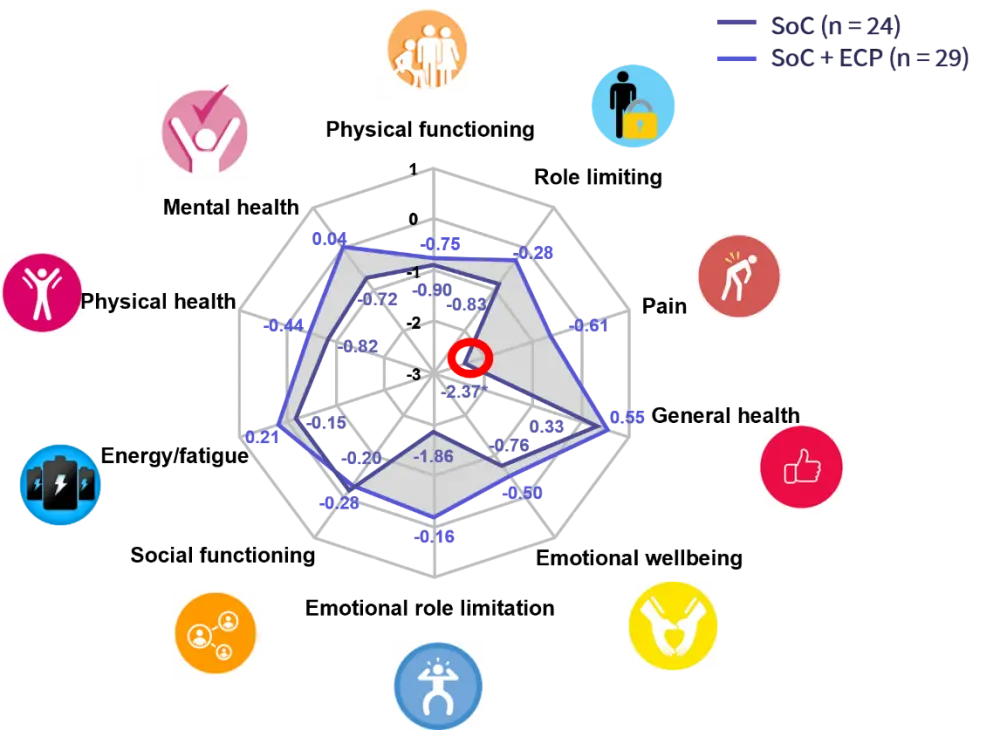 ECP, extracorporeal photopheresis; SF-36, 36-item short form health survey; SoC, standard of care.