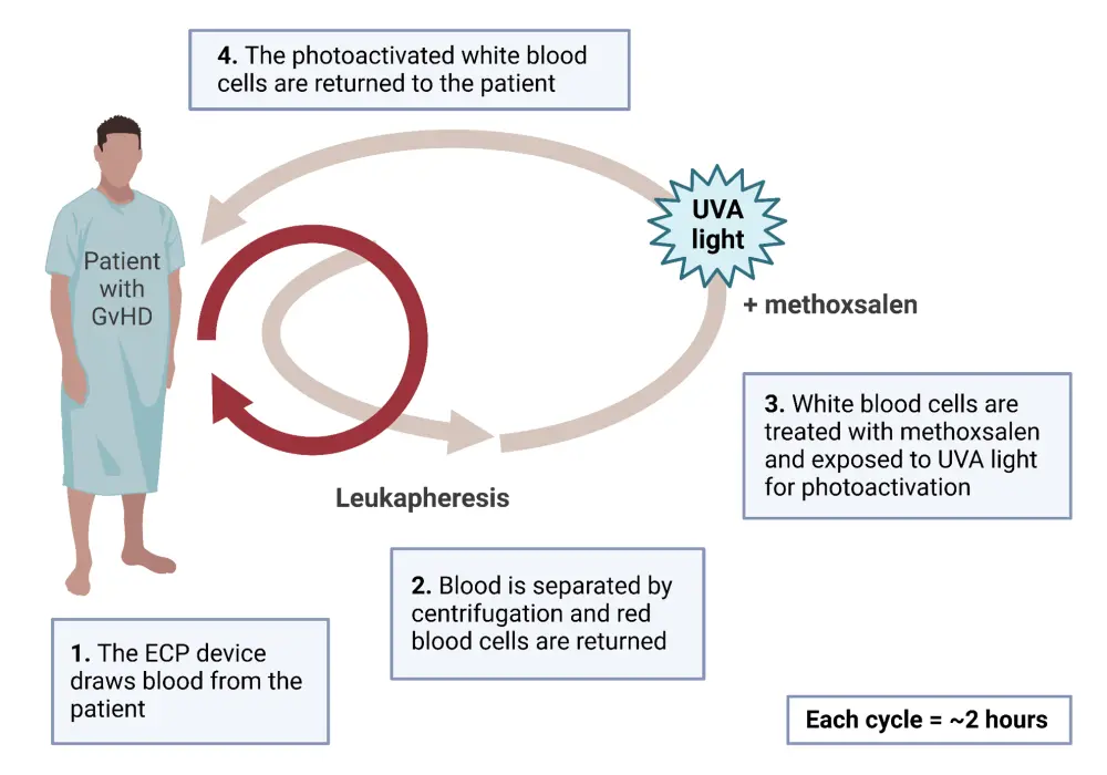 ECP, extracorporeal photopheresis; GvHD, graft-versus-host disease; UVA, ultraviolet A.